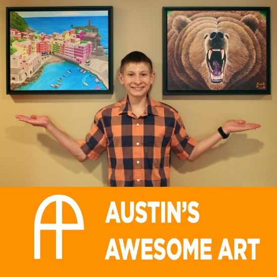 I am a 16-year-old acrylic painter merging realism with my imagination and using bright colors that pop. My goal with my work is to make people happy, and I believe the key to producing good artwork is having fun while making it. I offer canvas and acrylic prints of my work, as well as greeting cards I've designed from my paintings. Use code KIRKLAND for 15% off in my Etsy shop AustinsAwesomeArtCo. Check out my website here: www.austinsart.net