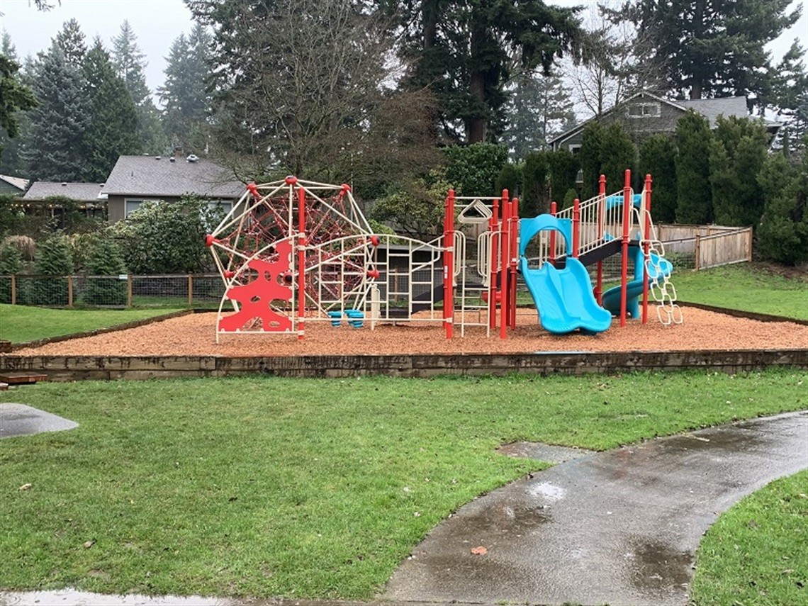Highlands Park features one playfield for soccer, softball and baseball, a playground, and a picnic table. The ballfield backstop was donated by the Highlands Neighborhood Association in 2007. There is limited street parking available at this park.