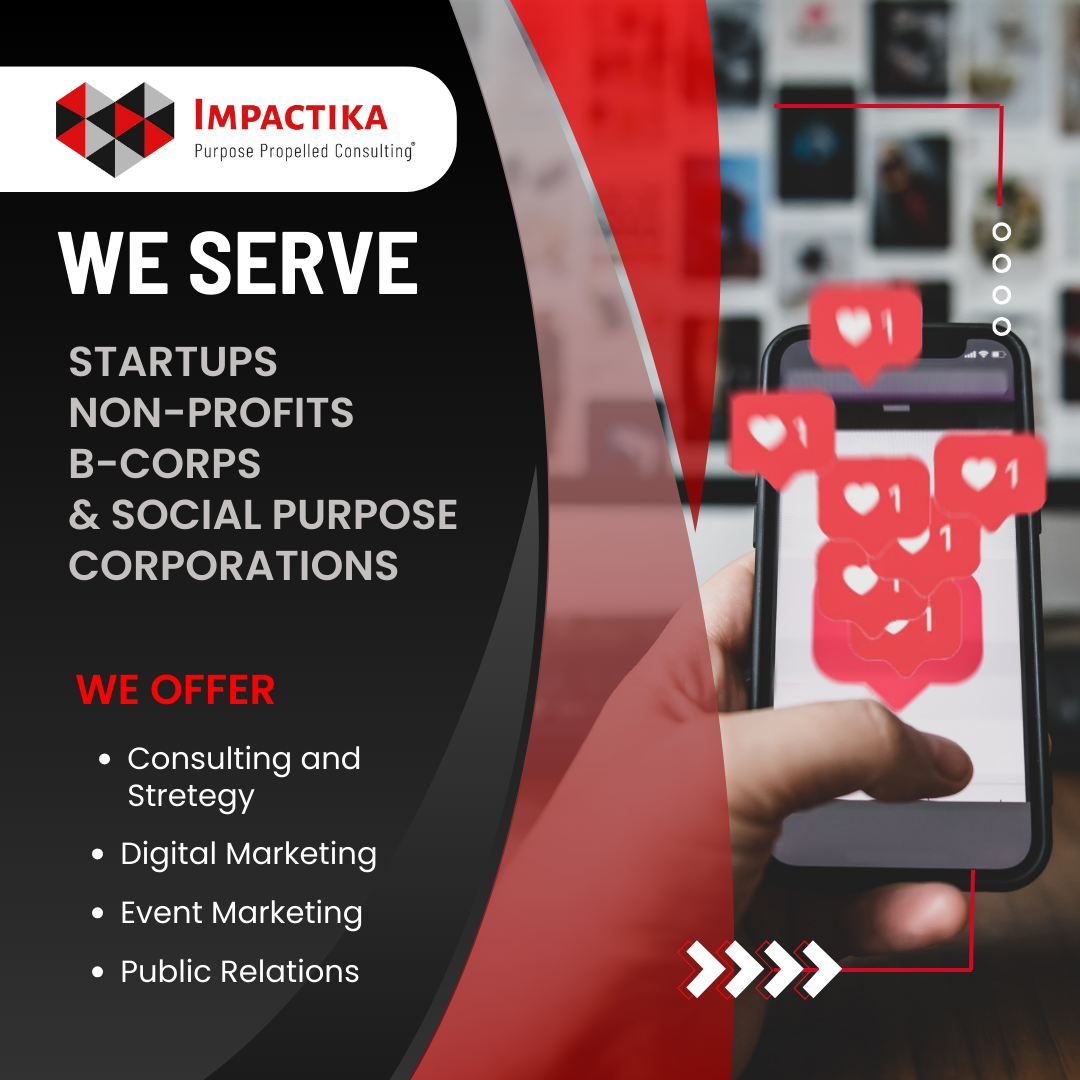 Impactika Consulting helps grow marketing and communication for startups, B-corps, nonprofits, and socially conscious organizations. We a licensed, certified minority-and women-owned business in the Washington State. We are dedicated to helping you spread your message, build trust, and accomplish your mission of doing good. We offer decades of expertise in business development, strategy and planning, digital marketing management, event marketing, and public relations. Let us help you amplify your purpose with marketing that matters.
