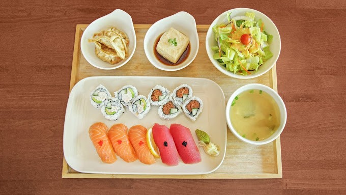 Sushi is a popular Japanese cuisine that typically consists of vinegared rice combined with various ingredients such as raw or cooked seafood, vegetables, and sometimes tropical fruits.