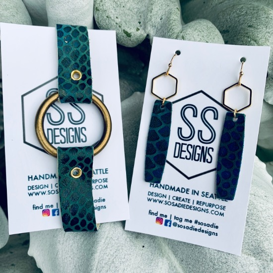 Meet Sadie! Born + raised in the Pacific Northwest, Sadie has always been creative + resourceful. She started out repurposing ethically + sustainably sourced leather remnants + turning them into beautiful pieces. What began with a few custom scarves for friends quickly grew into creating lightweight earrings + bracelets. Sadie creates each piece with love + thoughtfulness + her dedication to sustainability doesn't end there. Each month she gives back to a local or larger non-profit benefiting women + children.