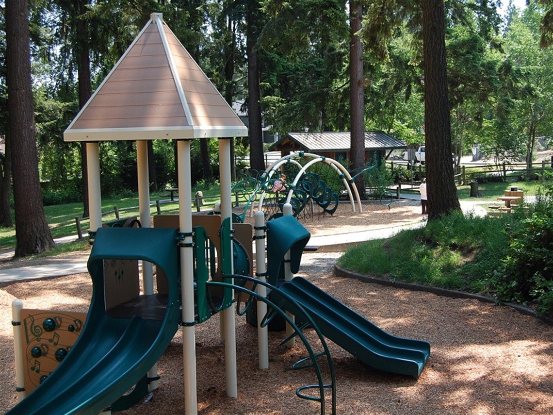 South Rose Hill Park is a neighborhood park featuring a playground, a basketball court, picnic tables, and restrooms. The restroom building is typically open March through October. The playground area is fenced. Trails connect the north end of the park to the playground and restroom area. A small parking lot with an ADA parking space is located at the end of NE 72nd St. You can also access the park from NE 70th St or from the south end of 128th Ave NE.