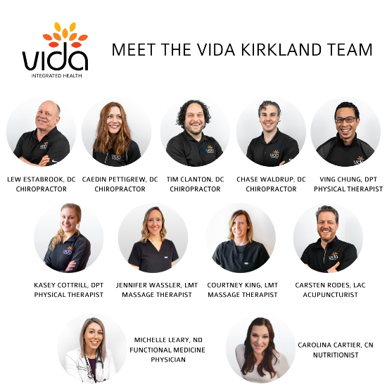 Vida is a true integrated health center where Physical Therapists, Chiropractors, Massage Therapists, Acupuncturists and Functional Medicine Primary Care Physicians all come together under one roof, discussing and reviewing your treatment with one common goal, yours.