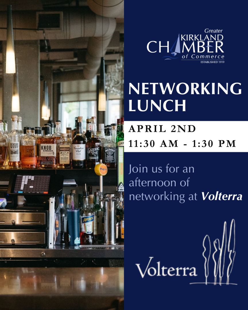 Join us for our April member networking lunch, where Kirkland's business community comes together to build connections, share ideas, and grow relationships. Whether you're new to the area or a longtime local, this is your chance to expand your network and be part of something bigger.