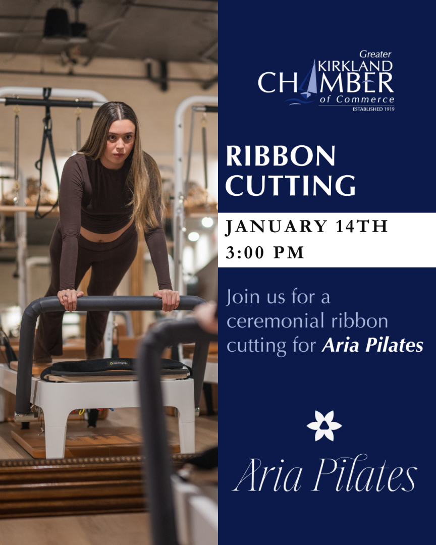Come be a part of the excitement as we welcome Aria Pilates to the Kirkland community! Join us for a celebratory ribbon cutting as we mark the opening of this fantastic new business and pilates studio in downtown Kirkland and show our support.